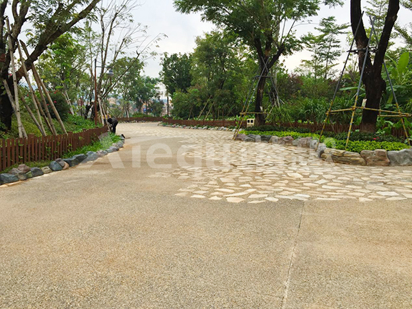 鋪裝類型:壓印藝術(shù)地坪、洗砂面藝術(shù)地坪、礫石面藝術(shù)地坪