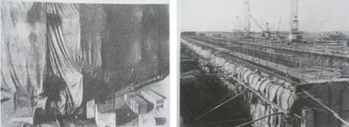 圖-8 施工時(shí)采用篷布擋風(fēng) 圖-9 施工后采用外掛麻袋