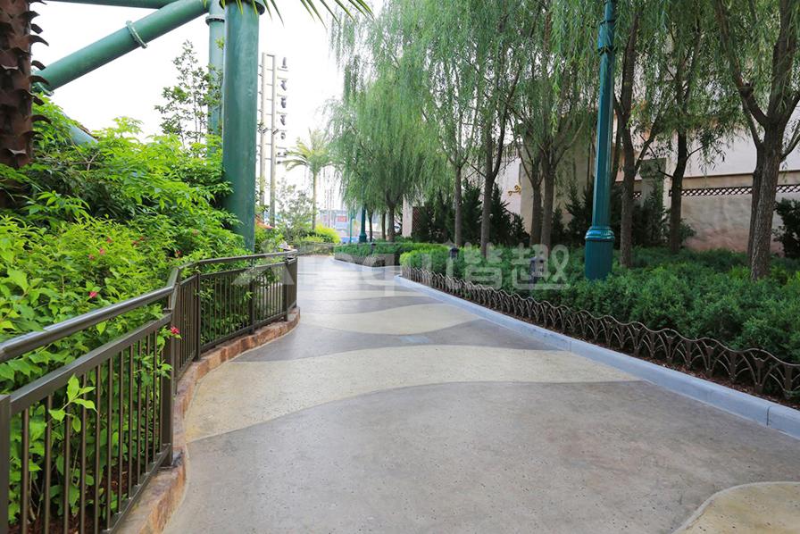 彩色混凝土鹽巖面藝術(shù)地坪被廣泛應(yīng)用于各類游樂(lè)園、主題公園、景觀地坪等地面鋪裝。